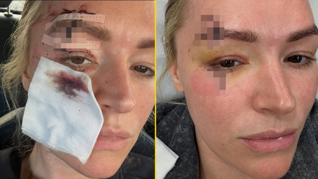 Laura Woods passou a ter lesões faciais e no braço, necessitando intervenção médica.